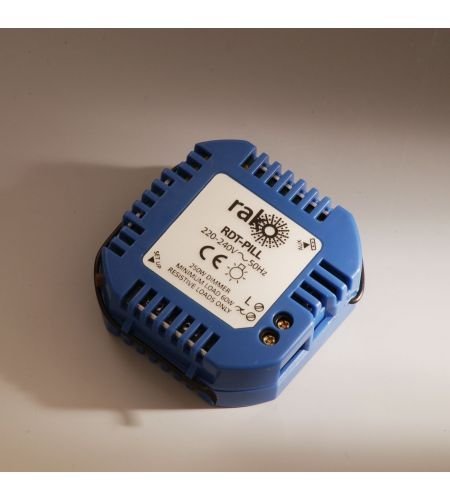 A compact 250w RF dimmer designed to be located in a standard UK or European backbox. The neutral less design allows for retrofit connection in standard wiring situations. Trailing edge technology for quiet reliable dimming of tungsten GLS and tungsten halogen GU10 style lamps. Controlled from any Rako RAKOM device or simple contact closure input using a momentary push switch.?
