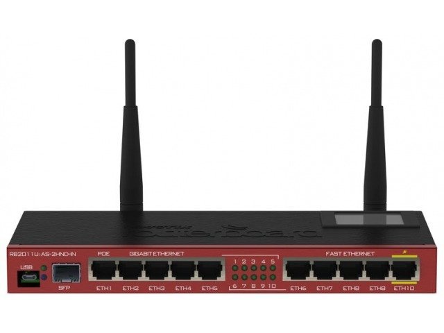 RouterBOARD 2011UAS-2HnD has most features and interfaces from all our Wireless routers. It’s powered by the new Atheros 600MHz 74K MIPS network processor, has 128MB RAM, five Gigabit LAN ports, five Fast Ethernet LAN ports and SFP cage (SFP module not included).