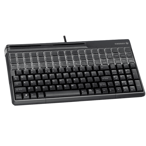 Black 14in USB keyboard with 3-track magnetic stripe reader. US 135 position key layout with 32 additional keys. 135 programmable and 54 relegendable keys. Includes ‘Cherry Tools’ configuration software and UPOS drivers.