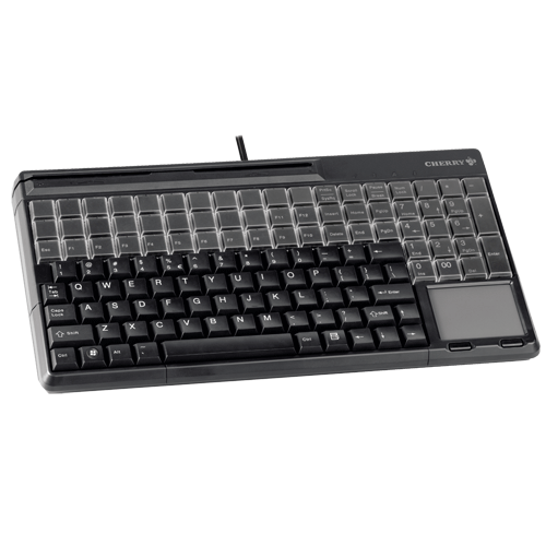 Black 14in USB keyboard with 3-track magnetic stripe reader and touchpad. US 123 position key layout with 20 additional keys. 123 programmable and 60 relegendable keys. Includes ‘Cherry Tools’ configuration software and UPOS drivers.
